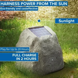 ☀️ SOLAR-POWERED FOR NONSTOP OUTDOOR ENTERTAINMENT: Enjoy hassle-free outdoor music with these solar-powered Bluetooth rock speakers. Say goodbye to the need for hidden, buried cables like other outdoor systems require. These speakers recharge effortlessly via solar power or USB-C for added convenience. With a robust 2000mAh battery, they deliver up to 7 hours of playtime at max volume, making them perfect for day-long gatherings, relaxing poolside, or enhancing your garden ambiance.