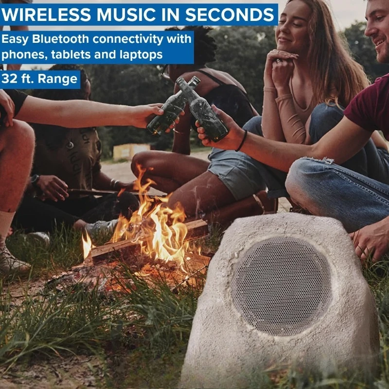🔗 EXPAND YOUR OUTDOOR SOUND SYSTEM WITH MULTI-LINK: Create an immersive outdoor audio experience with wireless multi-link capability, connecting up to 50 speakers. Whether hosting a barbecue or relaxing in the yard, these rock speakers deliver synchronized sound across your space.