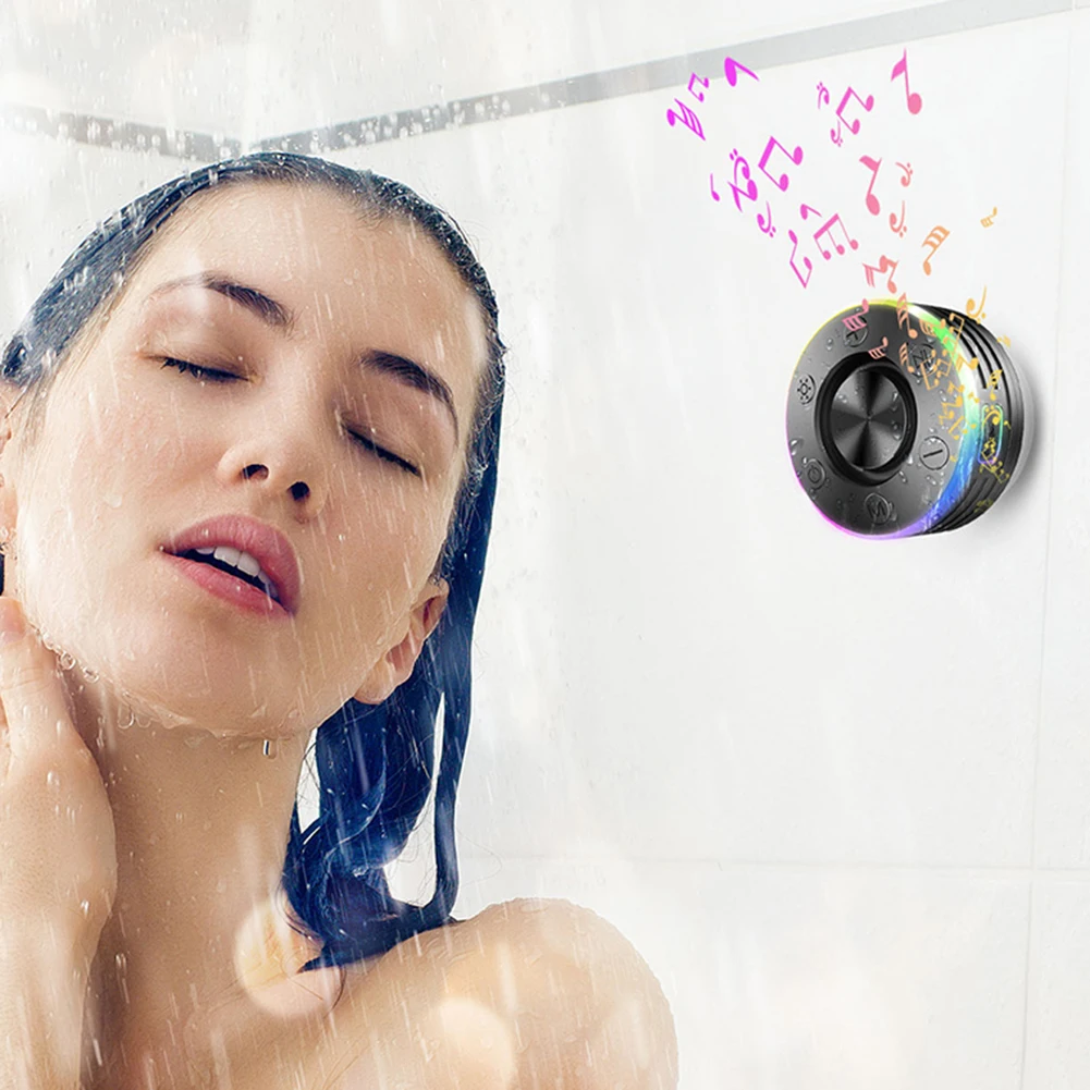 Waterproof Shower Speaker with Suction Cup/RGB Light Bluetooth-Compatible 5.2 Portable Wireless Speaker Hands-Free Call/FM Radio Stereo Subwoofer Built-in Mic for Party/Outdoor/Bathroom/Travel